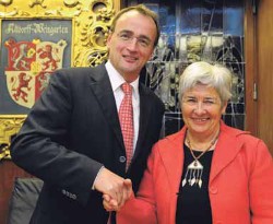 Helga Bayha und Oberbürgermeister Markus Ewald (Foto: Reinhard Jakubek) aus der Bürgerzeitung "Weingarten im Blick"