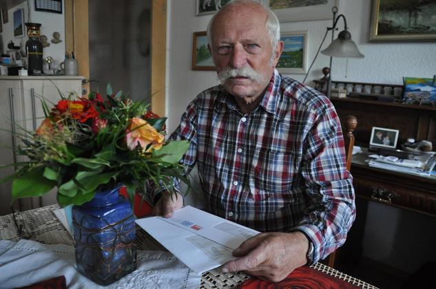 Die Blumen sind von Thomas Oppermann, die Briefe von Sigmar Gabriel und Claus Schmiedel: Rudolf Bindig hat zum 75. Geburtstag viel Post bekommen (Foto: Nicolai Kapitz)