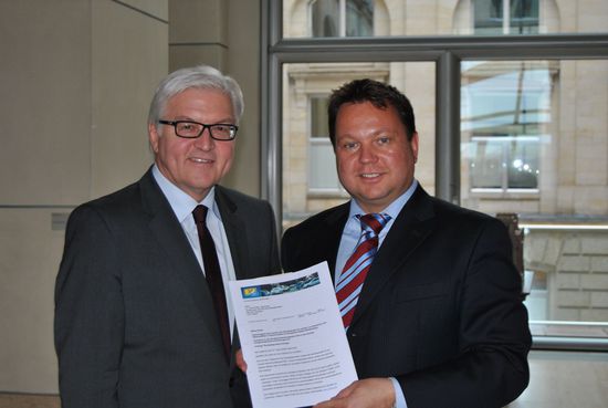 Der Biberacher Bundestagsabgeordnete Martin Gerster (SPD) hat dem Vorsitzenden der SPD-Bundestagsfraktion Dr. Frank-Walter Steinmeier einen offenen Brief der „Bürgerinitiative B30 “ übergeben. Gerster bat Steinmeier, sich in Berlin dafür einzusetzen, dass die Baumaßnahme in den "vordringlichen Bedarf" im neuen Bundesverkehrswegeplan 2015 aufgenommen wird.