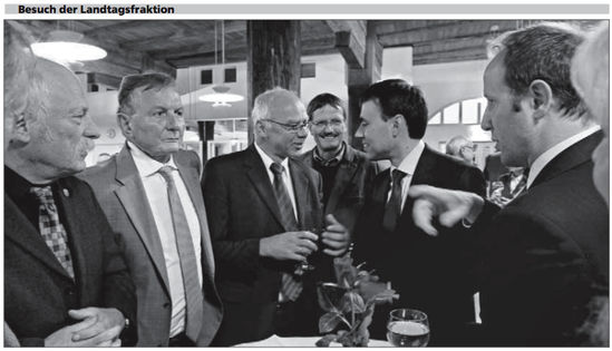 Das Gespräch suchen, den Landkreis besuchen: Das hat sich die SPD-Landtagsfraktion vorgenommen. Nach der ersten Tour durch die Region mündete gestern Abend der Tag in einen Gesprächsabend im Ravensburger Schwörsaal. Nils Schmid, Landesvorsitzender der SPD, forderte in seiner Rede höchsten Einsatz für Bildung. Erneut verteidigte Schmid Stuttgart 21, forderte aber zugleich eine Volksabstimmung über das Bahnprojekt. Unser Bild zeigt von links: der ehemalige SPD-Bundestagsabgeordnete Rudolf Bindig, Claus Schmiedel, Vorsitzender der SPD-Landtagsfraktion, Professor Karl-Heinz Hensler, Direktor der Dualen Hochschule Ravensburg, Peter Clement, Landtagskandidat für den Wahlkreis Wangen, SPD-Landesvorsitzender Nils Schmid und Ravensburgs Oberbürgermeister Daniel Rapp.